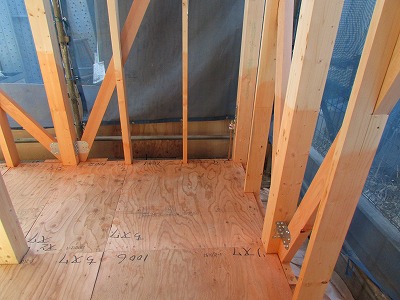 防蟻工事 ・建物外周部分の柱にシロアリなどの昆虫などの被害が出ないようにする作業で、1階のフロアから1m位の高さまで塗っています。