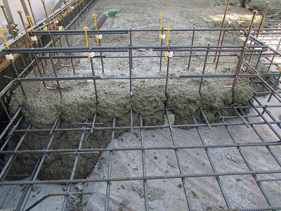 ・1枚目はポンプ車で打設した時の写真です。表面に骨材が浮き出ていて表面が波打っていることがわかります。