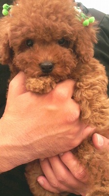 2014/01/29 2010年2月26日生まれ ♂のトイプードル 名前はクニックホームズの会社名からホームズ君 と命名しました(笑) 性格は、おとなしくて甘えん坊、人は大好きだけど ワンちゃんは少し苦手(涙) こんなホームズですが毎日会社に出勤していますので是非一度会いに来てくださいね♪ この写真は初めて我家に迎えた時のもので生後3カ月ほど不安からかプルプル震えていたのを覚えています小さくて可愛いかったです♪ 犬の成長は早いもので来月4才の誕生日を迎えます。