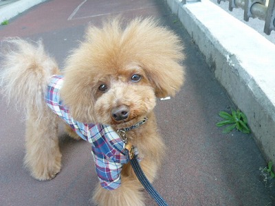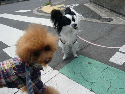 2014/04/15 出勤の途中で出会った、リボンちやん3才 元気に挨拶しに来てくれたのにホームズ君は 逃げ腰(涙)。。 なかなか上手にご挨拶出来ないホームズ君 幼い時に、あまりワンちゃんと接する事が 無かったからなのでしょうか?? リボンちゃんごめんなさいね! 今度は上手に挨拶出来ると良いのですが。。 リボンちゃんに又会えると嬉しいな~♪♪