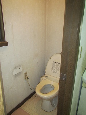 ・今回はそんなトイレを一式リフォーム行いました。便器にペーパーホルダー・壁紙・CFを