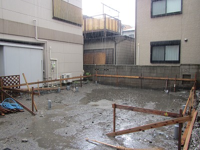 2014/06/09 《遣り方編》 本日から基礎工事が始まりました。 基礎工事の初めの作業は遣り方 ※遣り方とは、建物の外周部から約500㎜程度離した所に木杭を打込み、基礎天端+150㎜の所に貫板の上端を合わして取り付けます。 そこに芯墨などを写して施工を行います。 このことで、建築物の実際の位置・高さ・水平などを決定します。 次回は根切工事→捨コンクリート打設と進んでいきます!またUPします♪ ※疑問等ありましたらコメントお願いします。 クニックホームズ 大羅