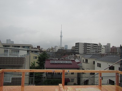PS.建て方工事終了後、小雨になり空がだんだんと明るくなってきて、目の前にスカイツリーが突如現れました!一瞬疲れがとれた感じがしました♪
