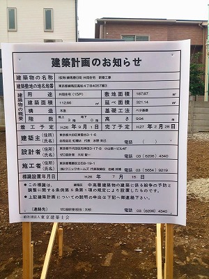 2014/09/16 《高松計画編》 練馬区・高松に新築3階建て木造共同住宅を 施工するにあたり、ご近所の方々にお知らせする為に 建築計画看板を先月たてました。 今週中には着工の予定! 今回も仮囲いを設置する予定です。 前面道路は交通が多いので多くの方々に クニックホームズを知ってもらえそうです♪ ※現場が始まりましたらまたUPします!! クニックホームズ 大羅