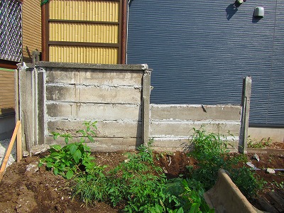 2014/09/19 《万年塀解体編》 練馬区・高松の万年塀を解体 敷地の北側に既存の万年塀があり 2人がかりで解体をしました。 ※万年塀とは※ コンクリートの支柱を土中に埋めコンクリートの平板を落としこんだ塀のこと。天端には笠木がのり、支柱には控えがつきます。 万年塀は高価なため、現在は安価なブロック塀に代わっています。 ここの物件は万年塀を壊した後は防音シートを 張り隣家に迷惑がかからないように配慮しました。 次の作業は遣り方です!またUPします。 クニックホームズ 大羅