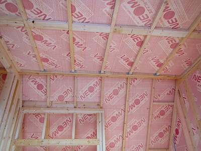 2014/10/07 《断熱材入れ編》 浮間の現場も順調に進んでいます。 先日断熱材入れを行いました。 今回の断熱材はフェノールフォーム保温板を 使用しました。見ての通り、ピンク色なので 現場内が凄く可愛くなっています♪ 断熱材は外周部に入れるので、 今回は壁、天井、屋根で4種類の厚さを使用。 この上に強化の石膏ボードを張っていきます。 クニックホームズ 大羅