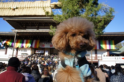 2015/01/05 新年明けましておめでとうございます♪ 今年も宜しくお願い致します。 我家は毎年、初詣に成田山に行くのですが ホームズ君を迎えてからホームズも一緒に 参拝に行っています。 毎年ながら、かなりの人が参拝にきているようで とても混んでいました! 早いもので今日はもう5日クニックホームズも 今日から始動しています! 休みモードから仕事モードに切り替えて 2015年も頑張っていこうと思います。 ホームズ君、今年も看板犬として、しっかり お仕事してね~!!