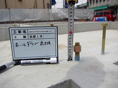 3㎜とシビアなので、トランシットなどで確認作業を行います。そして、HD出寸法・基礎の出来高を後から確認できるよう写真を撮ります。
