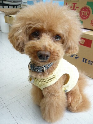 こんにちは~! 今日もホームズ君は看板犬のお仕事を 頑張っていますよ♪♪ 今日はこれから雨の予報になっています。 雷ゴロゴロ鳴らないか不安なホームズ君 なのでした!!
