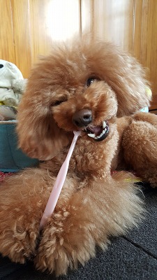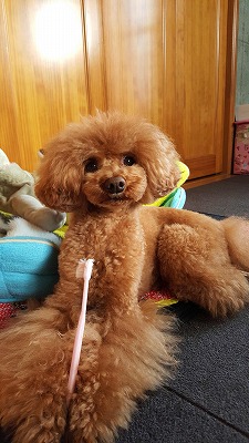 2015/12/28 あっ!といゅうまにクリスマス~♪も終わり お正月モードに町もなってきましたね!! 年末とは何の関係もないのですが。。。 今朝のホームズ君もの凄い、お顔で歯ブラシを しているので写真をパチリ!! 磨いていると言うよりブラシを噛んでいるだけなのです が。。。 やはり犬は歯が命!!いつまでも健康な歯で いてもらう為に、飼い主がケアしてあげないと ダメですね~! 僕は上手に歯ブラシ出来ますよ~な!得意顔な ホームズ君なのです!!