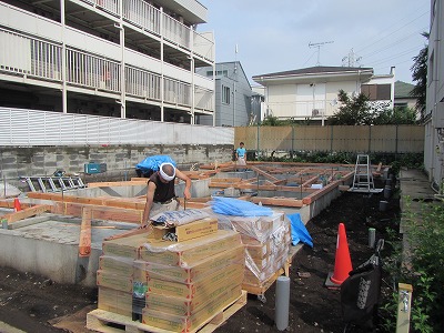 2016/09/06 世田谷区三軒茶屋 I 様邸新築工事! 上棟も無事に終わり現在躯体工事中です。 本日より内装工事のボード施工に入りました。 大工、電気、設備、防水工事の職人さん暑い中 本当にお疲れ様です!!