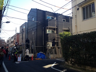 練馬区中村北 F 様邸新築工事! 外壁工事も完了し只今造作工事中です。。 写真は足場解体中のものです!!